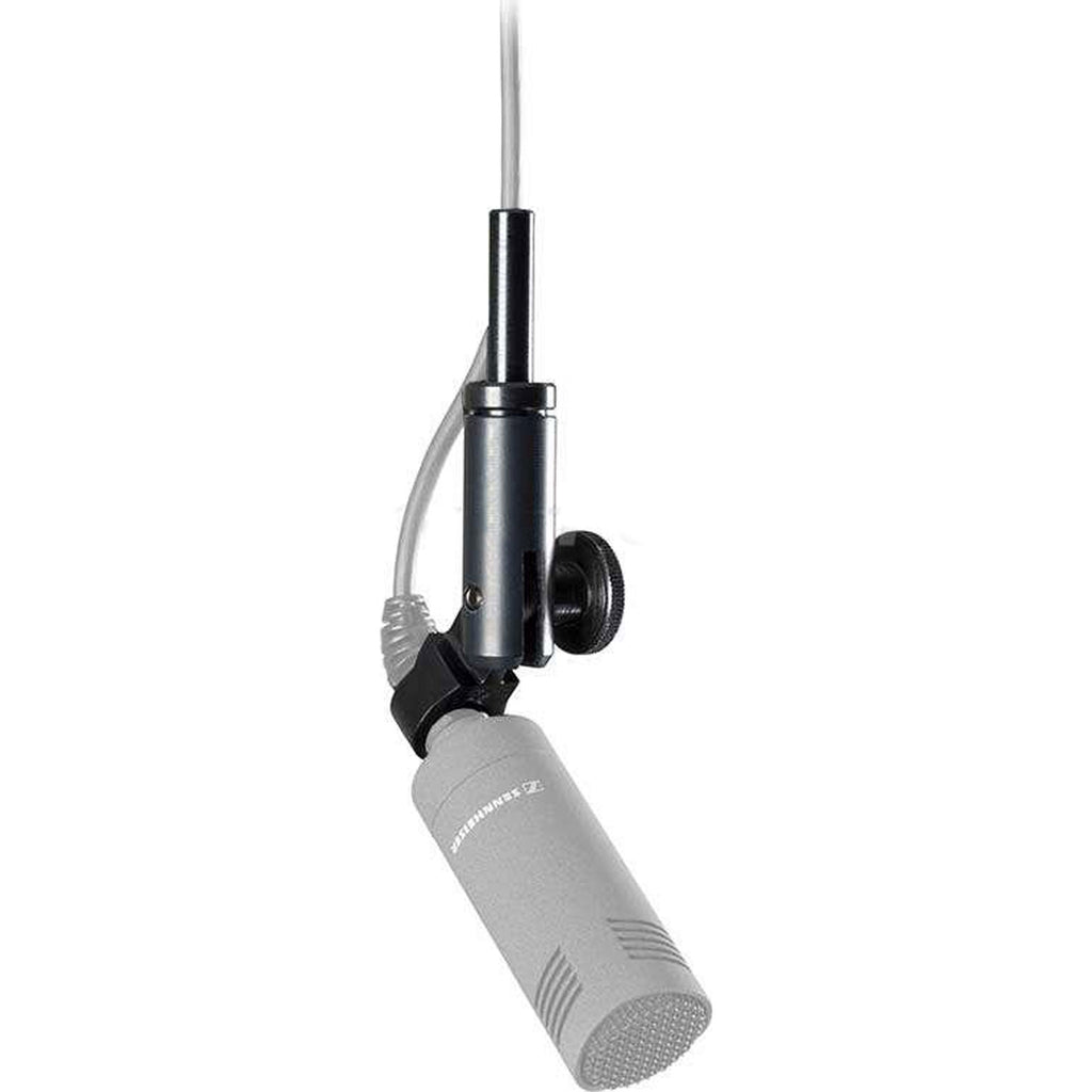 The Sennheiser MZH8000 Ceiling Mount is designed to mount MKH-8000 series capsules overhead. The mount is suspended from the connected cable and the angle is adjustable for perfect positioning. A cable guide takes up excess slack and secures the mount in place.