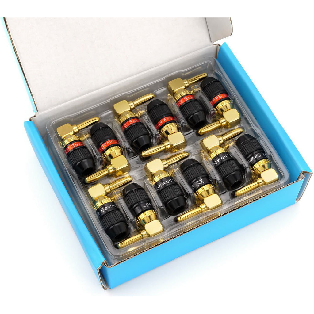 Deadbolt Compression Style Banana Plugs with Right Angle Connectors - 12 Red & 12 Black