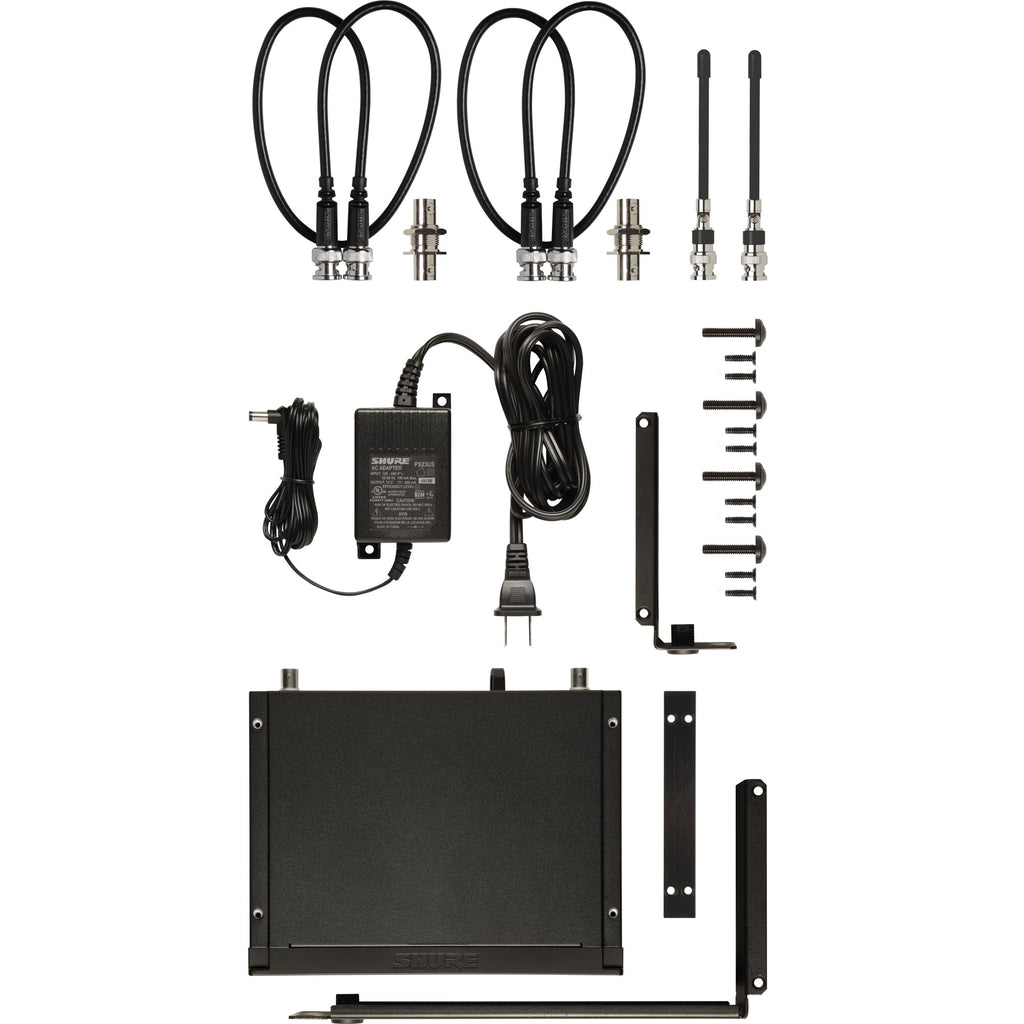 Includes BLX4R rack mount receiver, BLX1 bodypack transmitter, SM35 headset microphone, power supply, clothing clip, windscreens, rack mount hardware, and user guide.
