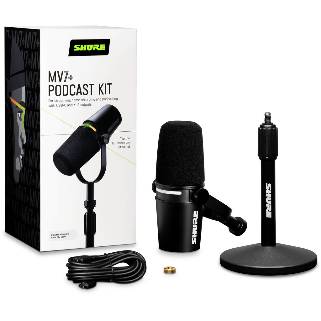 Refreshed with a customizable LED touch panel, powerful DSP features and even better audio, the MV7+ Podcast Microphone is a dynamic microphone built for discerning podcasters, streamers and musicians. This updated version offers USB-C and XLR outputs, an improved Auto Level Mode, as well as a new digital pop filter, real-time Denoiser and reverb effects. Select from millions of color options to make the touch-to-mute LED panel as unique as the audio you're recording.