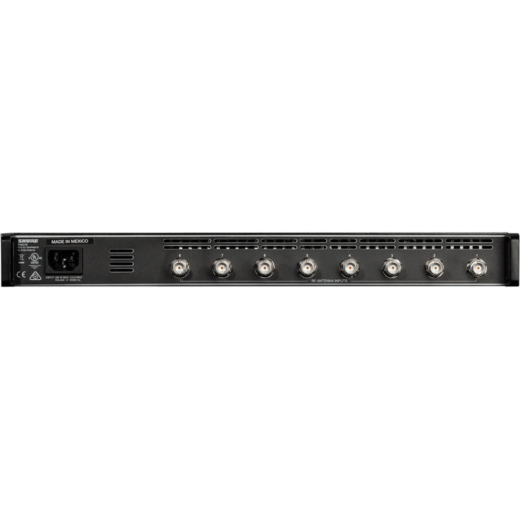 The PA821B active broadband antenna combiner streamlines the simultaneous operation of many PSM systems at a venue. The PA821B combines the RF outputs from up to eight PSM transmitters into one RF output to feed a single transmit antenna. This provides significantly improved reception quality due to reduced intermodulation distortion and dropouts due to multipath interference.