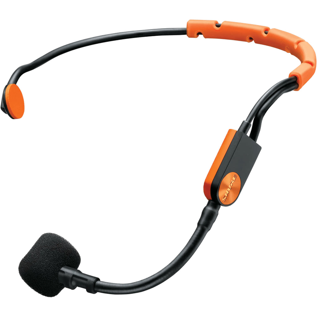 Cardioid fitness headset condenser microphone offers a moisture-repelling hydrophobic construction for use in fitness training, Features include windscreen and compatibility with Shure bodypack systems for replacement of TA4F-connected microphones.