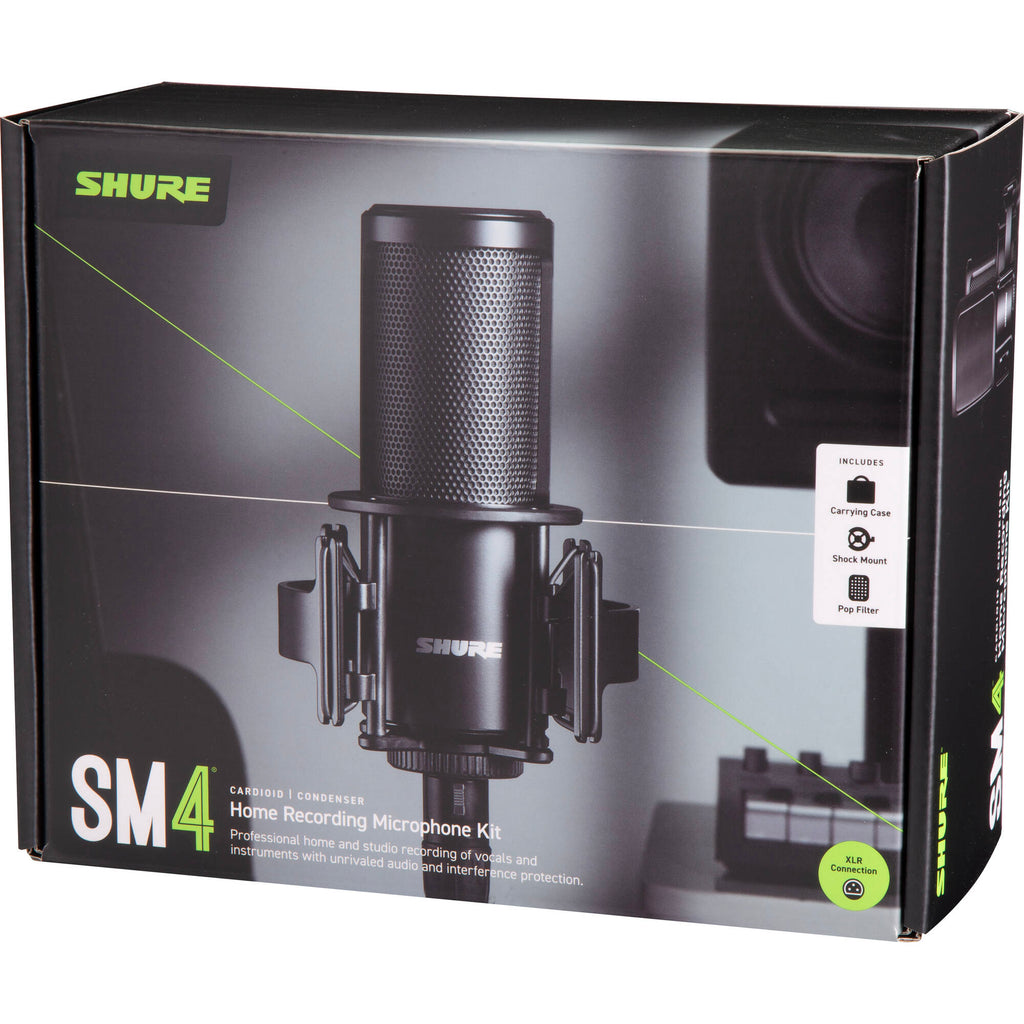 Bring the studio home with the new SM4 Home Recording Microphone. Capture professional recordings of vocals and instruments with mix-ready audio and interference protection. The 1" brass dual-diaphragm capsule is engineered to consistently reproduce every element of your performance with remarkable accuracy and exceptional low-frequency control. Patent-Pending Interference Shielding Technology blocks unwanted RF noise from wireless devices including cellphones, laptops and wi-fi routers, while the internal pop filter minimizes plosives. A sleek, low-profile design with all-metal construction delivers the perfect upgrade for your home studio.