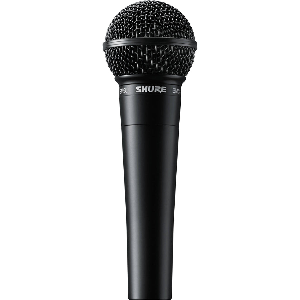 The legendary Shure SM58 vocal microphone is designed for professional vocal use in live performance, sound reinforcement, and studio recording. Its tailored vocal response for sound is a world standard for singing or speech. A highly effective, built-in spherical filter minimizes wind and breath "pop" noise. A unidirectional (cardioid) pickup pattern isolates the main sound source while minimizing unwanted background noise.