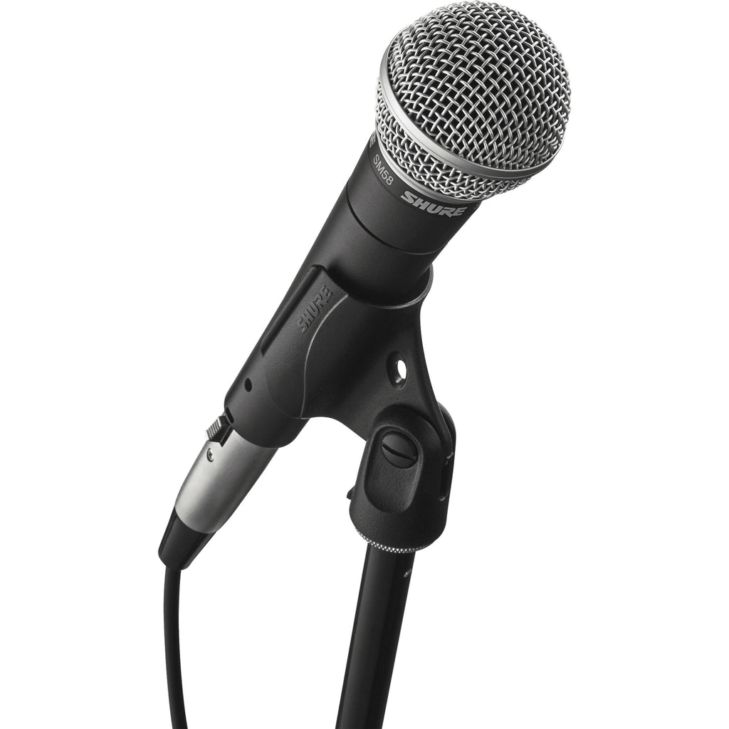 The legendary Shure SM58 vocal microphone is designed for professional vocal use in live performance, sound reinforcement, and studio recording. Its tailored vocal response for sound is a world standard for singing or speech. A highly effective, built-in spherical filter minimizes wind and breath "pop" noise. A unidirectional (cardioid) pickup pattern isolates the main sound source while minimizing unwanted background noise.