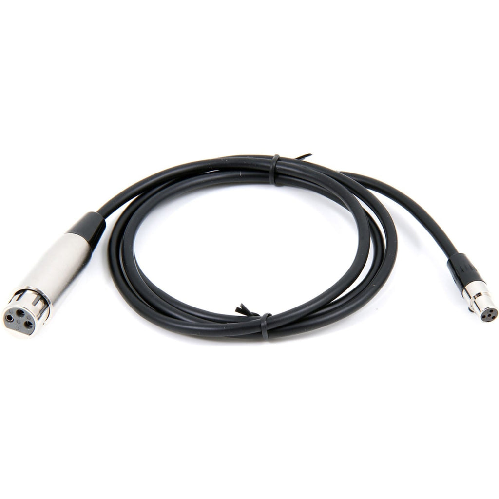 4-foot microphone cable connects a 4-pin TA4F mini-connector to a female XLR connector for bodypack transmitters.