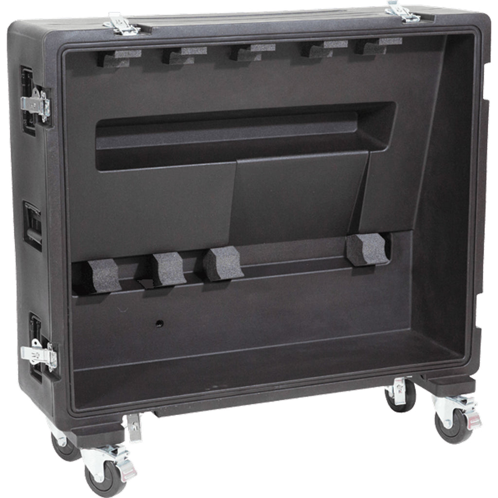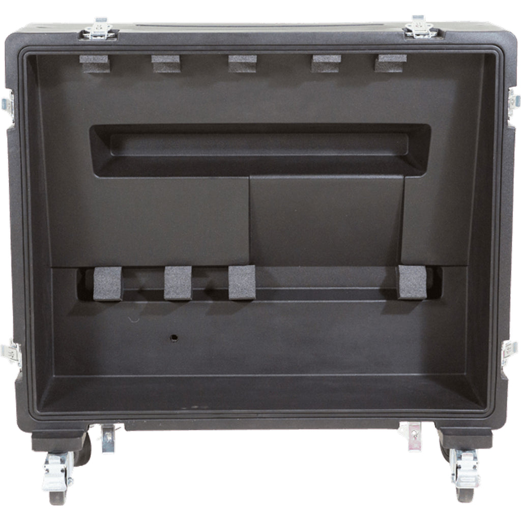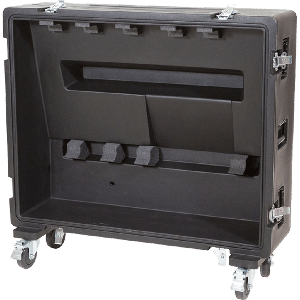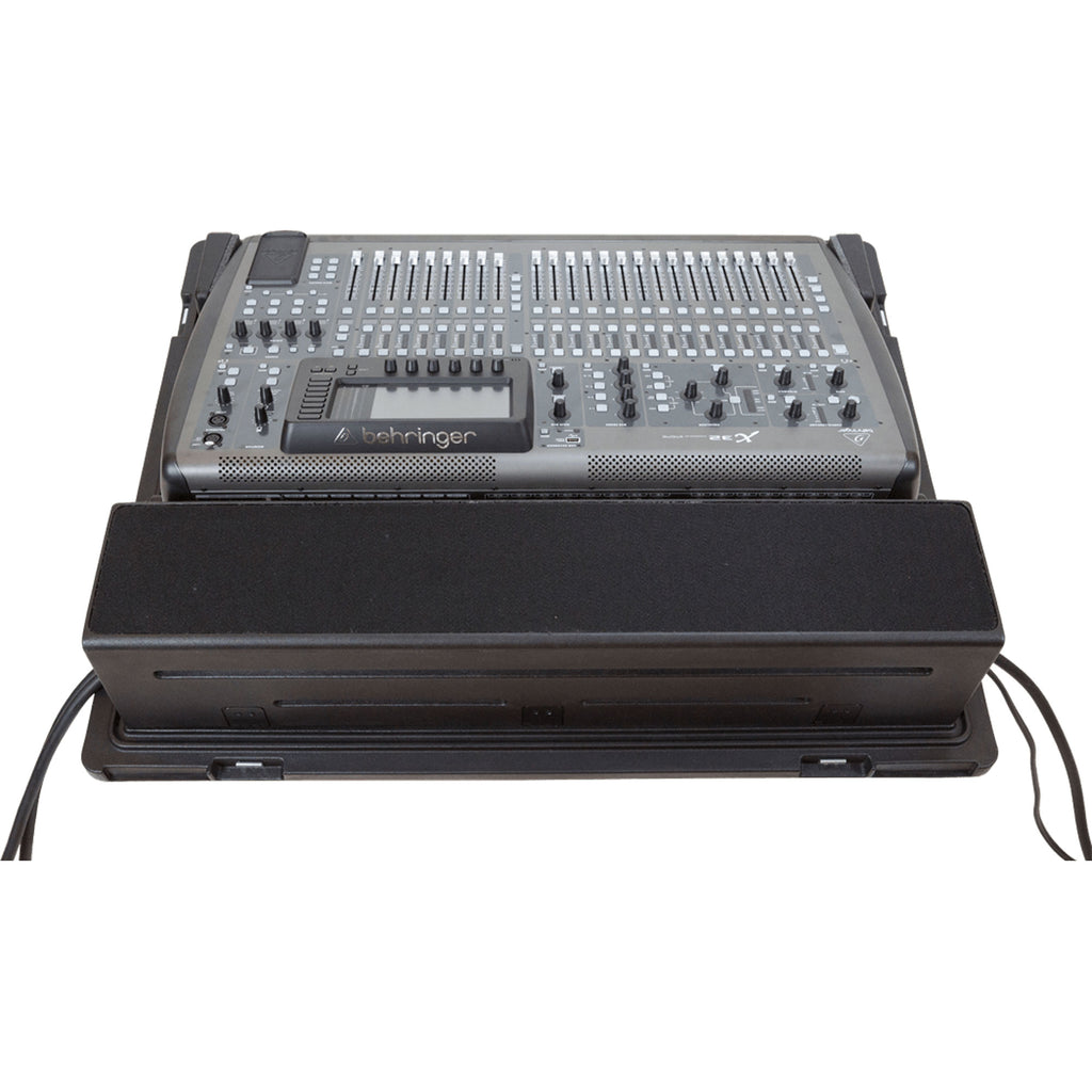 This rSeries Mixer Case features a custom foam interior for a X32 Behringer 32 Channel mixing console, with a double-walled, roto-molded LMDP exterior for maximum strength and rigidity with (4) casters (two of which are locking casters), (6) Spring loaded handles, (8) Steel heavy-duty latches, and a hinged doghouse for management of all of the back connectors.