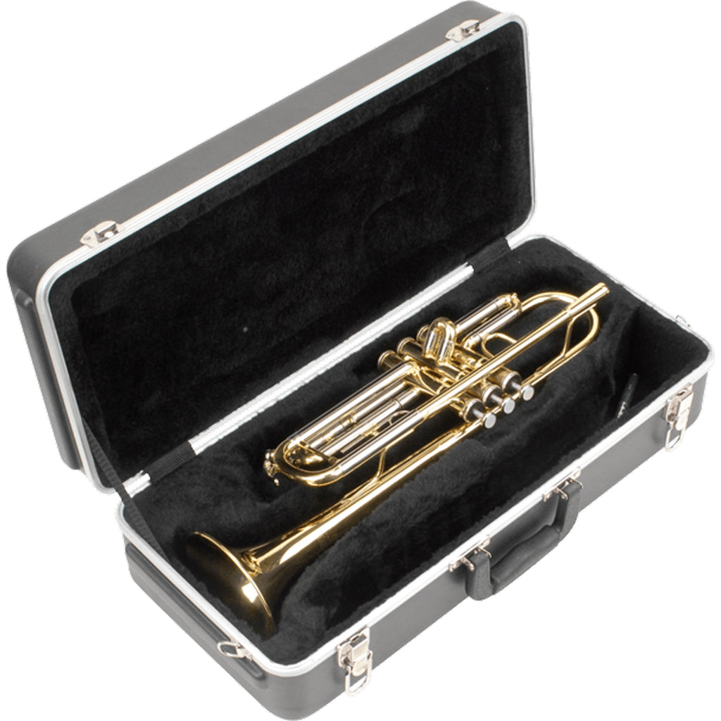 The instrument experts at SKB have painstakingly addressed every issue that is important to musicians and band directors: Fit, portability, durability, and style. The SKB Rectangular Trumpet Case provides excellent protection at a remarkable price and features a plush EPS foam interior, accessory storage for a straight mute, backing plates on all hardware, and convenient case stackability.