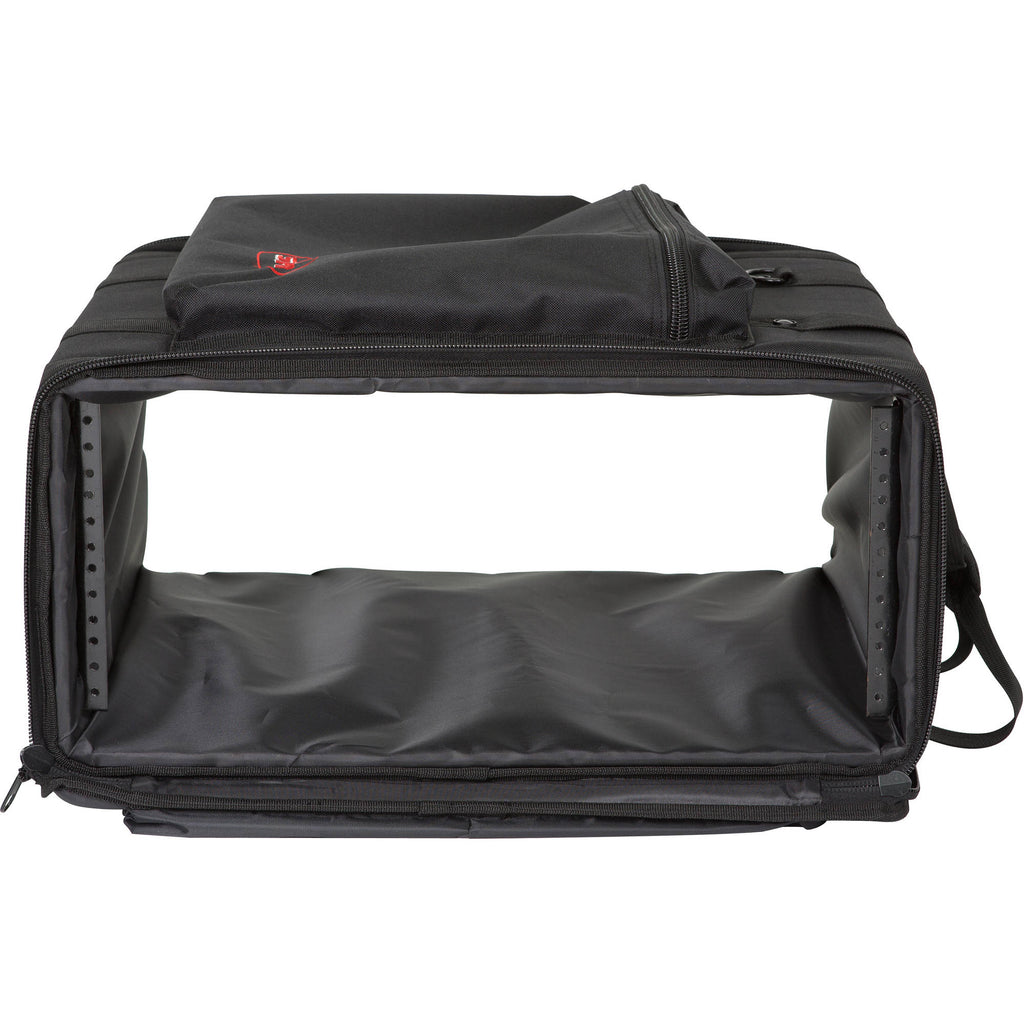 The 14.5" depth (front rail to back flap) provides plenty of room for the most popular wireless systems and is also an ideal solution for pre-amps, effects, etc. The padded front and back lid has heavy duty zippers that allow the flaps to open fully and fold underneath. A zippered pouch on the inside front flap provides excellent storage for wireless mic antennae. The large exterior zippered pouch is ideal for cables and/or body packs. Threaded steel rack rails are recessed to provide protection for equipment controls without inhibiting proper antennae placement. These cases are covered by SKB's one year Soft Product warranty.