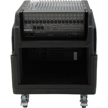 The Mighty GigRig Rolling Rack System has been redesigned from the ground up. The roto molded design features a deeper and longer angled top rack space (14U+) providing ample room for larger analog and digital mixers such as the Yamaha 01V96, Allen & Heath Mix Wizard, and Mackie Onyx. The deep design allows for up to 12U of vertical rack space (6U front rails standard with 6U optional rear rack rails).