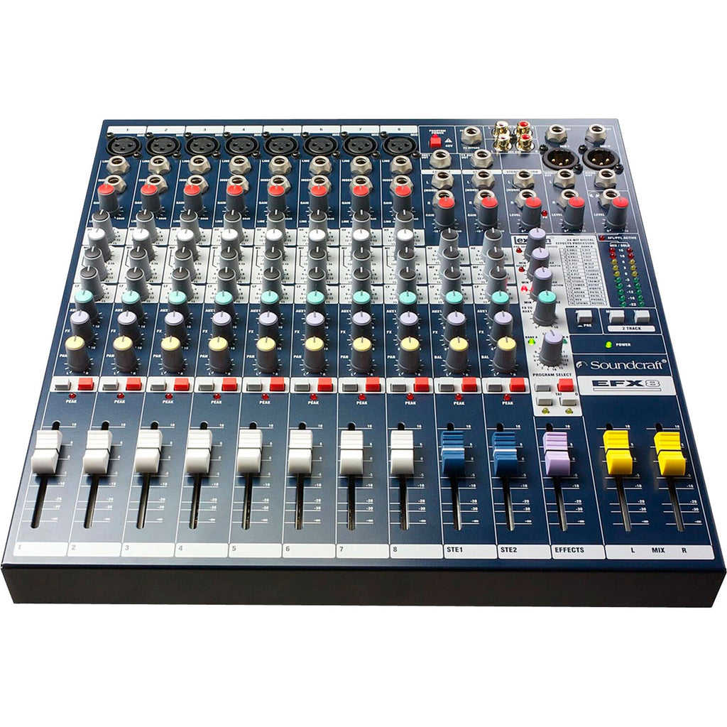 The Soundcraft EFX Series combines all the features of the popular Soundcraft EPM mixer with a built-in 24-bit, digital Lexicon effects processor, expanding the Soundcraft low-cost, multipurpose compact range.