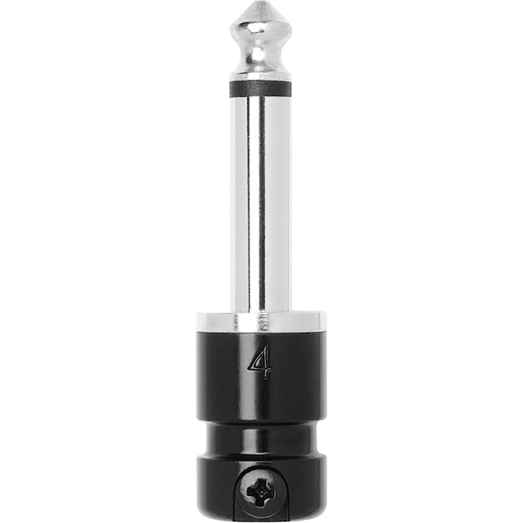 SPS4BK is the lowest profile 1/4" straight connector with strain relief in the industry. It features a proprietary two-screw cable clamping mechanism that can be retrofitted with a set of anodized screws to provide the most comprehensive color coding identification system found on any connector on the market.