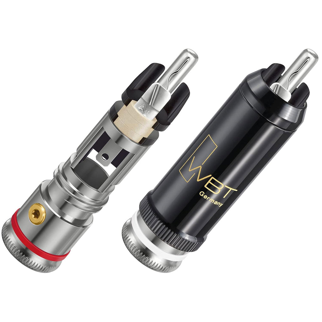 Other than for digital outputs it is very important for phono outputs (record players, microphones) to have a good shielding against electromagnetic interfering fields. The undesirable interspersions can be very high depending on the nature of the devices and first of all on what they are surrounded by (cellular phones, computers etc.). WBT-0110 nextgen pure was designed as the perfect RCA plug for digital links, the new WBT-0102 Ag optimizes analogue connections. WBT-0102 Ag has the more conductive and with the minus contact element connected brass clamping sleeve in order to provide the necessary electromagnetic shielding.