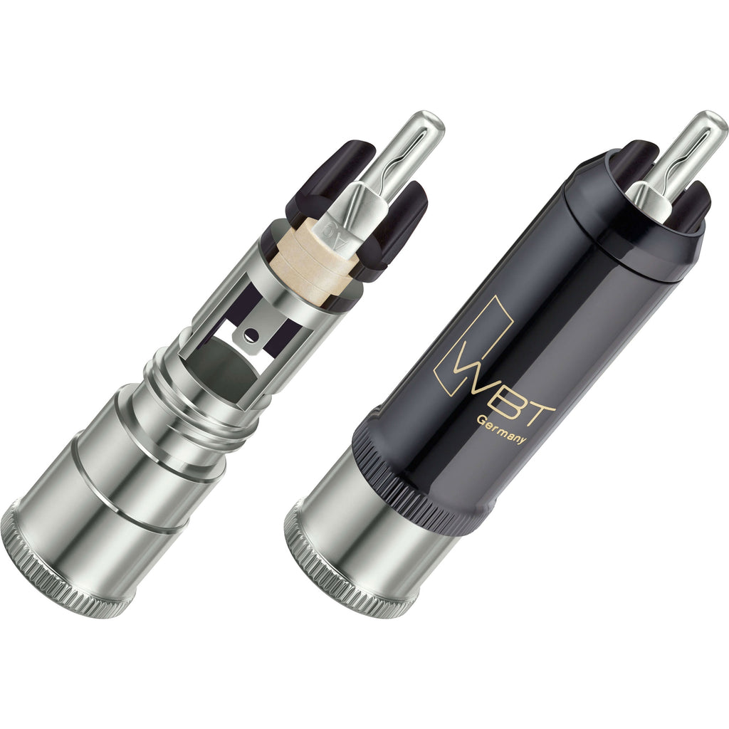 Other than for digital outputs it is very important for phono outputs (record players, microphones) to have a good shielding against electromagnetic interfering fields. The undesirable interspersions can be very high depending on the nature of the devices and first of all on what they are surrounded by (cellular phones, computers etc.). WBT-0110 nextgen pure was designed as the perfect RCA plug for digital links, the new WBT-0152 Ag optimizes analogue connections. WBT-0152 Ag has the more conductive and with the minus contact element connected brass clamping sleeve in order to provide the necessary electromagnetic shielding.