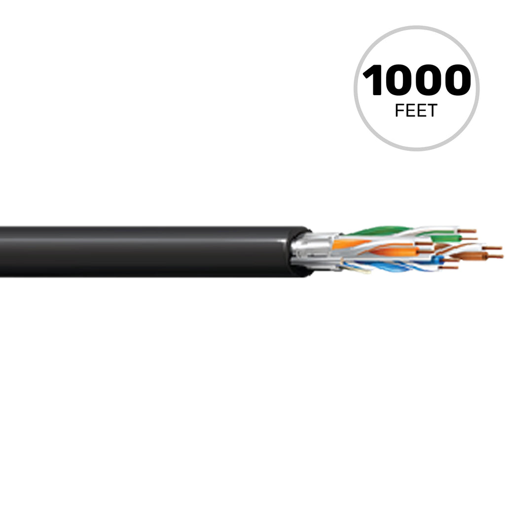 Shielded 4 Pair 23 AWG Cat6+ Ethernet Networking Cable with Polyolefin Insulation - Black - Full 1000' EZ Box Spool