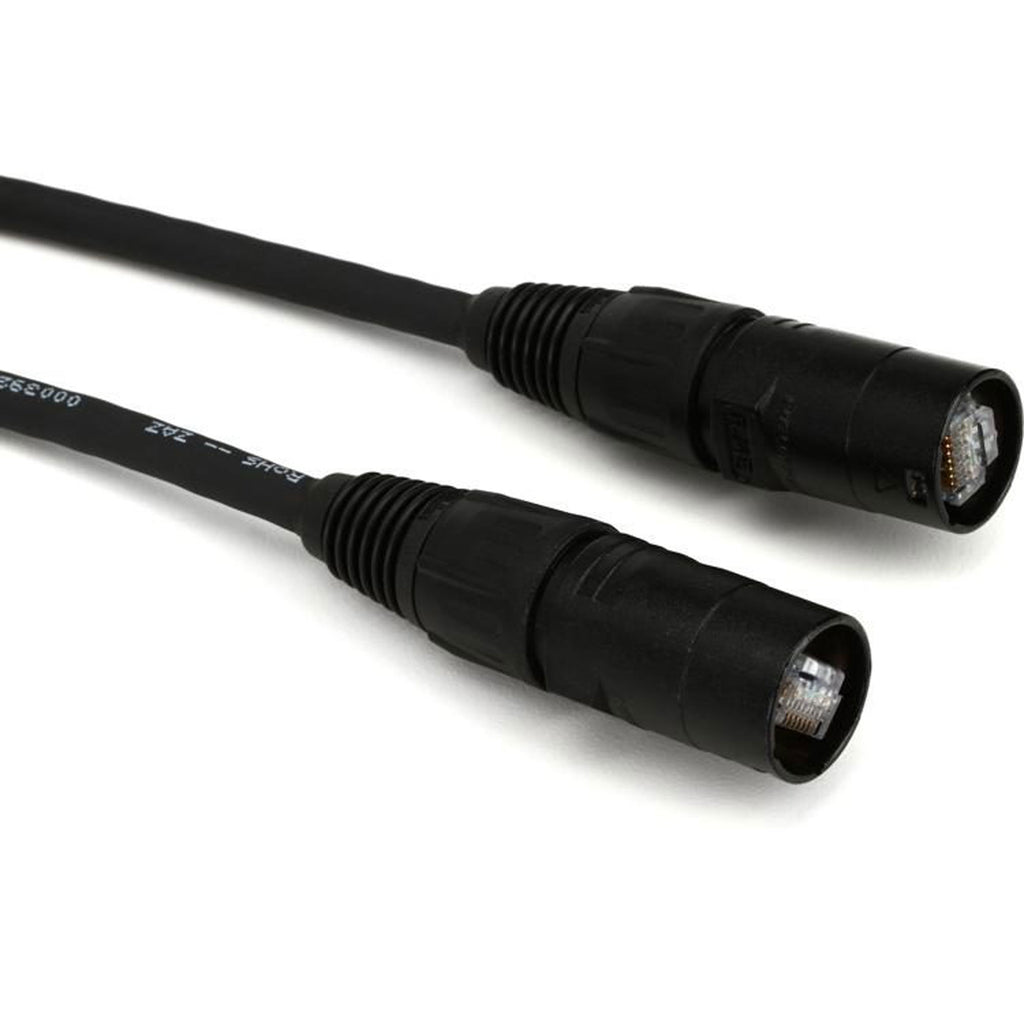 Built with ruggedized CAT-5e shielded cable and terminated with Neutrik CAT5e etherCON connectors.