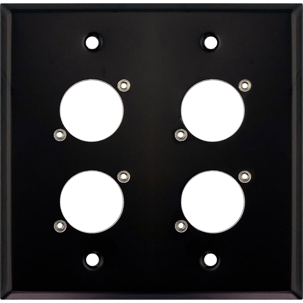Dual Gang Black Steel Wall Plate with Four Neutrik "D-Series" Punch Outs