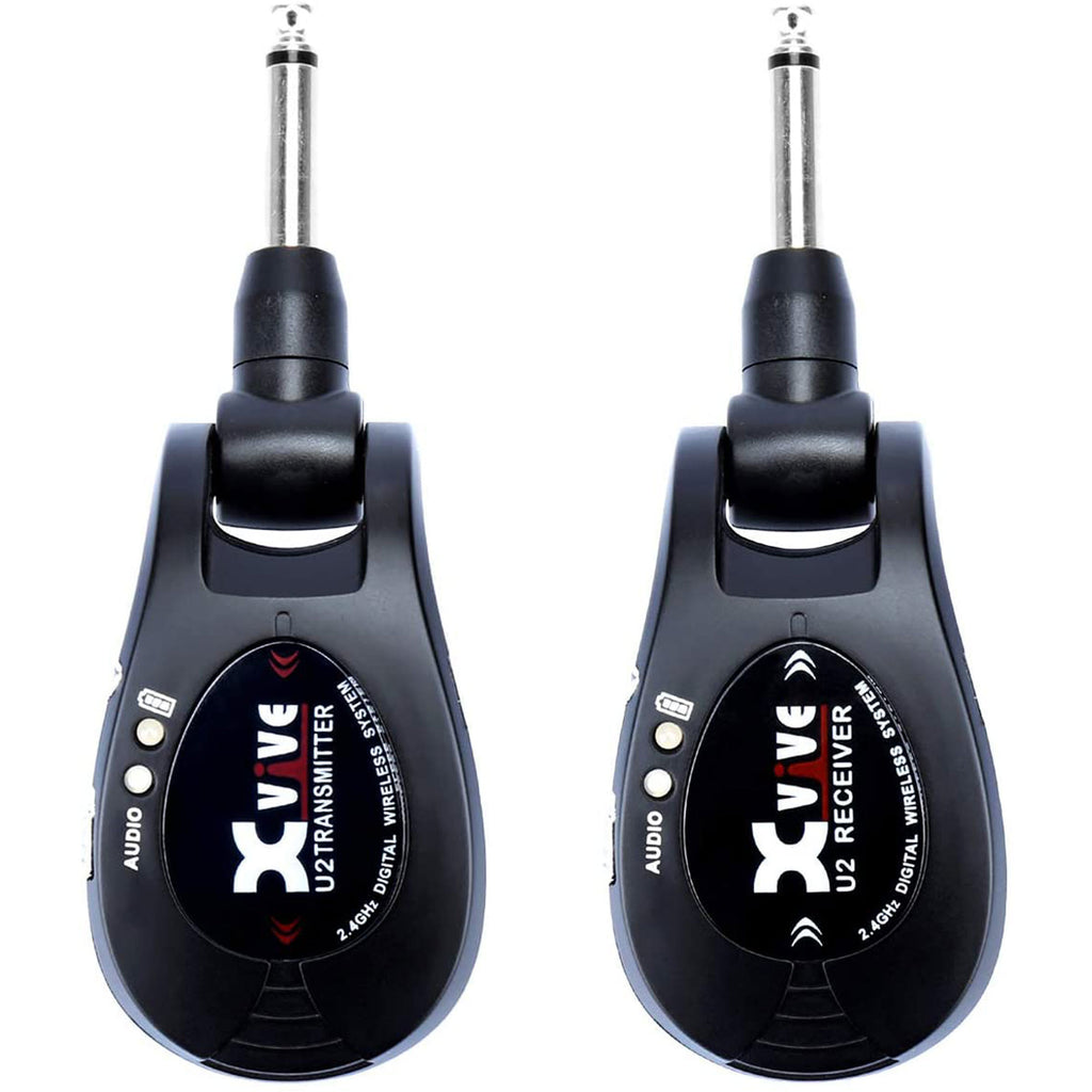 The Xvive U2guitar wireless system's digital technology delivers incredible audio quality and a super-reliable connection. It also fits in your pocket! The U2 boasts a full 20Hz-20 kHz frequency response, ensuring that you--and your audience--accurately hear the true sound of your instrument. The system has an unnoticeable 6ms of latency, which means that in addition to your tone, your groove will not be affected! The 2.4GHz ISM band offers crystal-clear wireless broadcast, ensuring the integrity of your signal over 70 feet of range onstage without any signal dropouts. The onboard Li-ion batteries help make the U2 wireless system environmentally friendly, and they last up to 5 hours per charge. The chassis is made out of durable ABS plastic that can withstand the rigors of touring and the harshest of climates. If you use effects,not only can this wireless unit run from your guitar / bass to your pedalboard, you can also use a second U2 system to run from your pedalboard to your amp! No more dodging cables on stage!