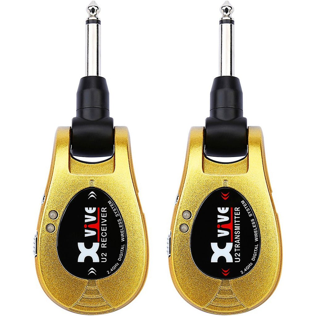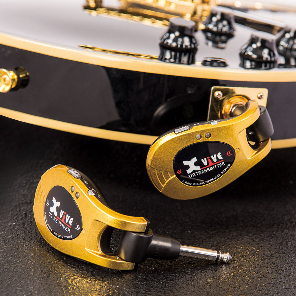 The Xvive U2guitar wireless system's digital technology delivers incredible audio quality and a super-reliable connection. It also fits in your pocket! The U2 boasts a full 20Hz-20 kHz frequency response, ensuring that you--and your audience--accurately hear the true sound of your instrument. The system has an unnoticeable 6ms of latency, which means that in addition to your tone, your groove will not be affected! The 2.4GHz ISM band offers crystal-clear wireless broadcast, ensuring the integrity of your signal over 70 feet of range onstage without any signal dropouts. The onboard Li-ion batteries help make the U2 wireless system environmentally friendly, and they last up to 5 hours per charge. The chassis is made out of durable ABS plastic that can withstand the rigors of touring and the harshest of climates. If you use effects,not only can this wireless unit run from your guitar / bass to your pedalboard, you can also use a second U2 system to run from your pedalboard to your amp! No more dodging cables on stage!